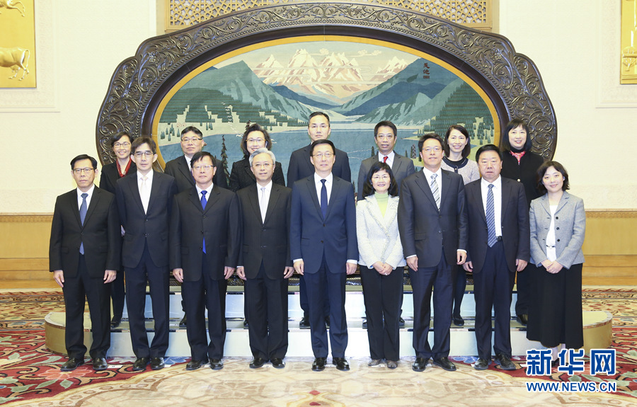 11月21日,中共中央政治局常委、國務院副總理韓正在北京人民大會堂會見香港特別行政區公務員事務局局長羅智光率領的特區政府常任秘書長和部門首長內地研修訪問團全體成員。 新華社記者姚大偉攝