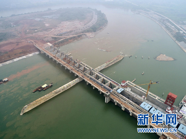 廣西南寧老口水利樞紐工程(5月18日無人機拍攝)。 新華社記者 周華 攝