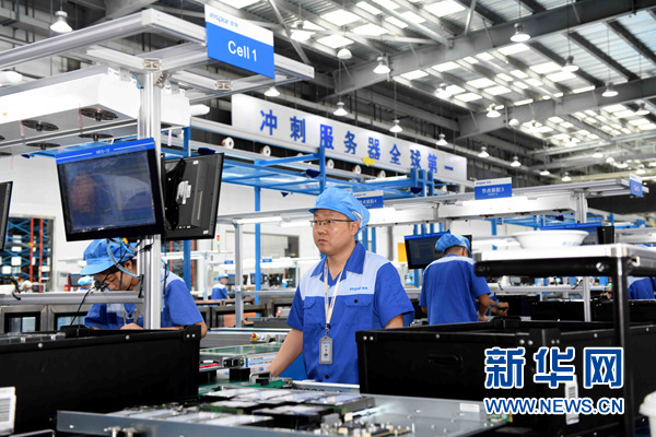 員工們在浪潮高端容錯計算機產業基地生產服務器(6月14日攝)。新華社記者 朱崢攝