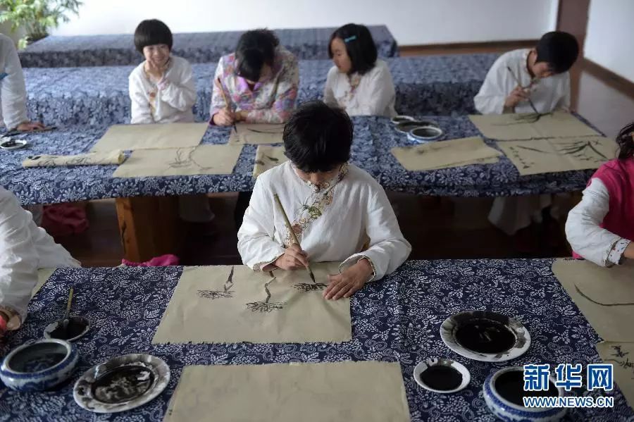 在山東曲阜彬彬有禮學校,孩子們練習繪畫。