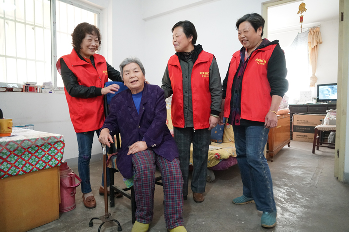 和王美華老人一樣,72歲的蔣桂梅也是一名獨居老人。經歷喪夫之痛的她搬進新居后,陌生的環境、生疏的鄰里,讓她十分不適應,經常閉門不出?!疤焯烨瞄T組”多次上門探望后,她也決定加入志愿者隊伍。從“被敲門”到如今青和居第一網格黨支部書記,蔣桂梅說自己“活得更有意義”。