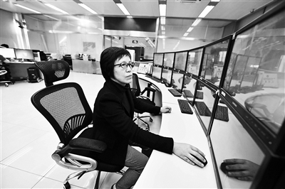 ▲北京市氣象臺首席預報員郭金蘭正在氣象會商室查看氣象數據