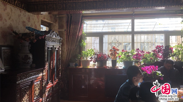 尕瑪文索的新家在統(tǒng)建區(qū)的一棟居民樓內(nèi),房間里擺滿了藏族特色的家具和裝飾品,各種花朵盆栽占據(jù)了整個(gè)陽(yáng)臺(tái)。“新房子的冬天和夏天一樣暖和,花可以繼續(xù)長(zhǎng),什么植物都可以養(yǎng)。”“暖和”成了尕瑪文索對(duì)新房子最大的印象。