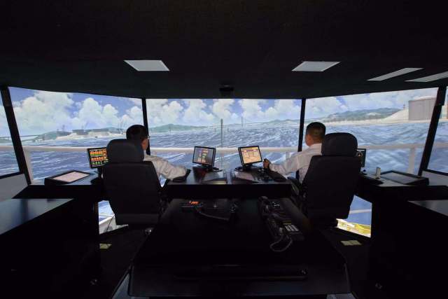 工作人員在執行海上船舶航行模擬