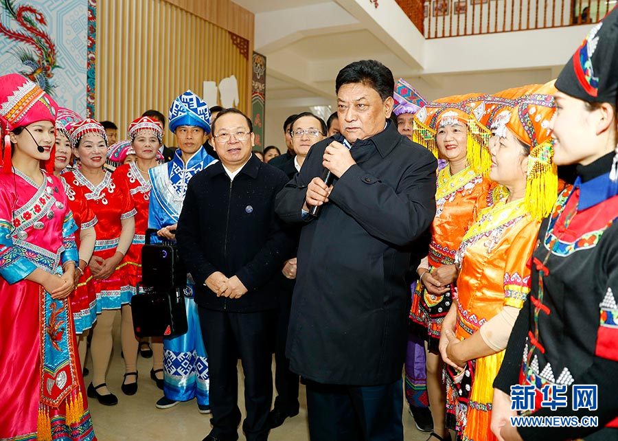 12月12日,全國人大常委會副委員長、中央代表團副團長白瑪赤林率中央代表團四分團,帶著以習近平同志為核心的黨中央的親切關懷和全國各族人民的美好祝福,在來賓市看望慰問各族各界干部群眾。這是白瑪赤林在來賓市興賓區(qū)鳳凰鎮(zhèn)八一文化中心看望在這里活動的各族群眾。 新華社記者 陳建力 攝