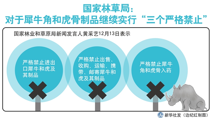 國家林草局:對于犀牛角和虎骨制品繼續(xù)實行“三個嚴格禁止” 新華社發(fā) 邊紀紅 制圖