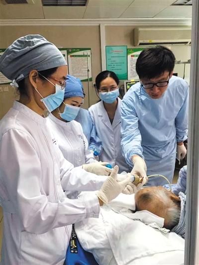 醫生正在為病人進行糞菌移植。 廣州市第一人民醫院供圖