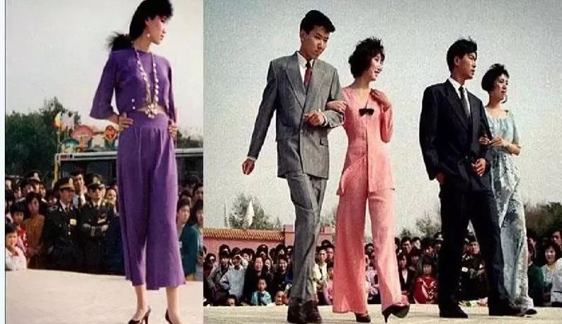 隨著改革大門大開,西方和港臺文化傳入內地,人們的生活越發多姿多彩,服裝也從單一的綠藍黑灰轉變成了五彩繽紛。