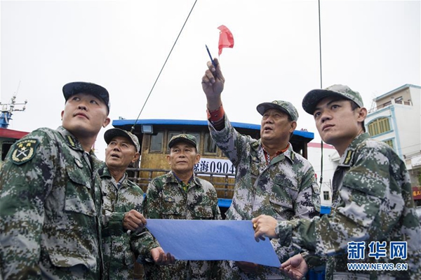 海南省瓊海市潭門鎮(zhèn),東面環(huán)海,南接博鰲,這里是王書茂的家鄉(xiāng)。史料記載,潭門漁民自秦代開始便世世代代在南海打魚,稱南海為“祖宗海”。作為潭門海上民兵連副連長的王書茂,每年有一多半時(shí)間在海上度過,由于熟悉當(dāng)?shù)厣缜槊袂椋啻螆?zhí)行急難險(xiǎn)重任務(wù),每次都沖鋒在前,出色完成任務(wù)。44年的漁業(yè)生涯中,共組織漁民抵御臺風(fēng)120多場,對600多位漁民實(shí)施了救援,還參加了多處南沙島礁的建設(shè)。“盡管危險(xiǎn),但我們從來沒有放棄過守護(hù)和耕耘南海。”王書茂說。