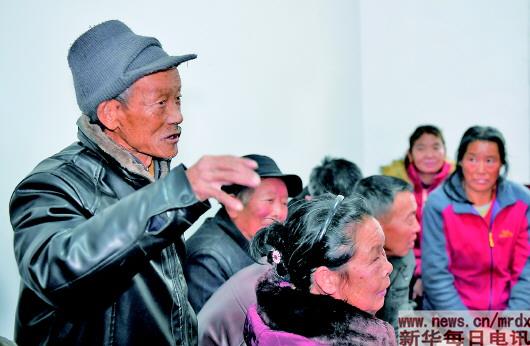 “我也要說兩句。”聽了談話內容,這位叫申永貴的老人站了起來?!斑@一二年,家家院壩修得好,生活變化大,都是習總書記關心咱們老百姓。我已經79歲嘍,生活好了,就想著多活一年半載,能看著我們村變得更好?!崩先说脑捯齺硪黄坡?。