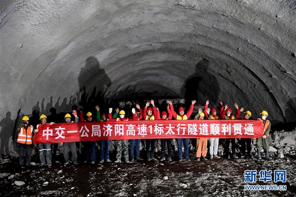 12月26日,中交一公局工程建設者在濟陽高速公路穿越太行山隧道群施工現場慶祝隧道貫通。新華社記者 朱祥 攝