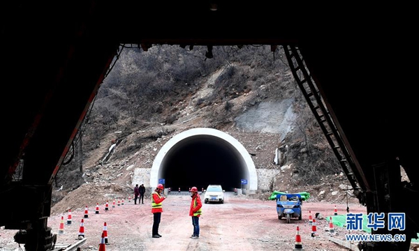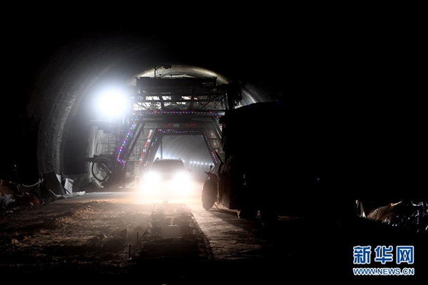 12月25日,中交一公局工程建設者在濟陽高速公路穿越太行山隧道內施工。 新華社記者 朱祥 攝