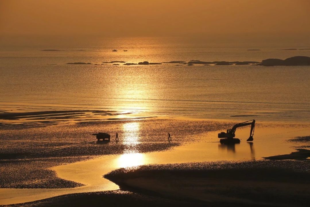2018-12-22,乳山銀灘。清晨太陽剛剛升起,海灘已經(jīng)忙碌起來,最美勞動者。作者:阿倫(震)