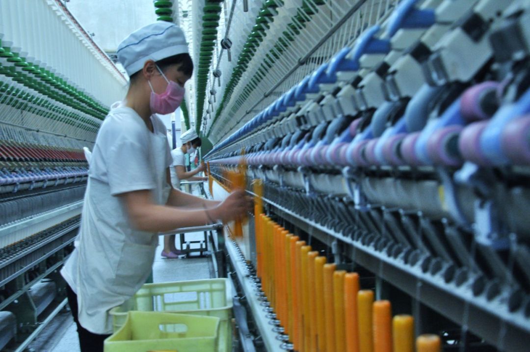 2018-03-28,河南省禹州市紡織廠。美麗的紡織女工,工作時(shí)巧手如梭。作者:宜家