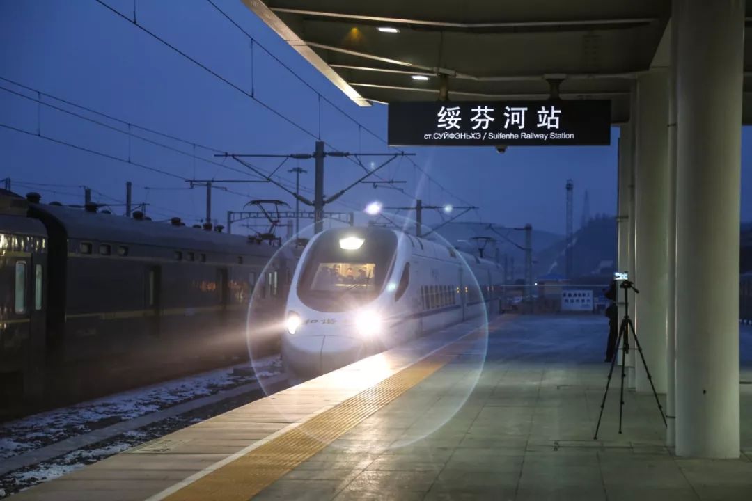 2018-12-25,黑龍江省綏芬河市。12月25日6時31分,隨著D7961次列車駛進黑龍江省最大的對俄口岸綏芬河站,綏芬河口岸迎來了期盼已久的動車時代。作者:石頭
