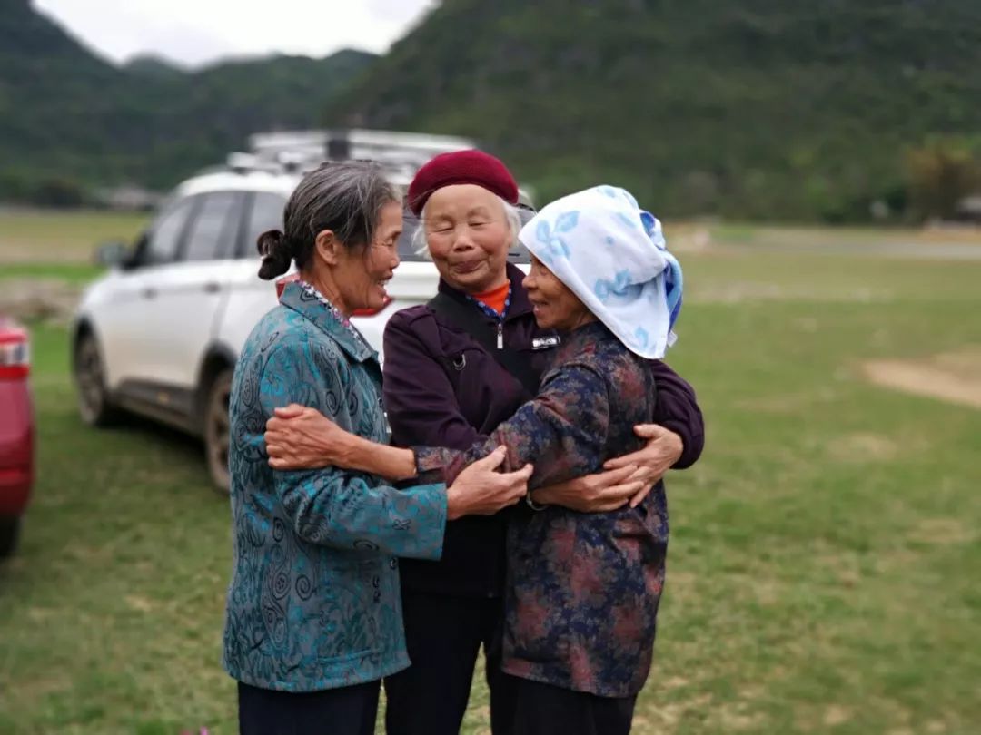 2018-04-06,廣西百色。幾個老表姐妹,在嫁出家鄉數十年后,因掃墓第一次重聚,平均年齡70歲的三人,激動地相擁,有說不完的話!作者:夏木