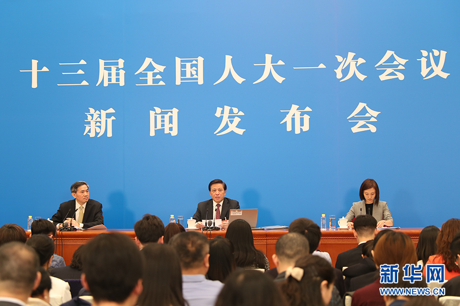 3月4日,十三屆全國人大一次會議在人民大會堂新聞發布廳舉行新聞發布會,由大會發言人張業遂就大會議程和人大工作相關的問題回答中外記者的提問。圖為大會發言人回答中外記者提問。新華網/中國政府網 陳杰 攝