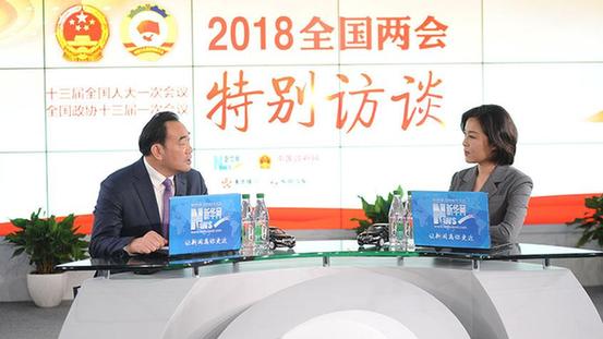 全國人大代表、徐州市委副書記、市長周鐵根做客新華網“2018全國兩會特別訪談”與網友在線交流