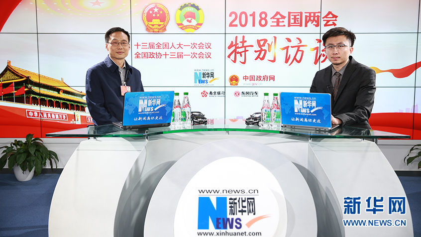 3月6日,全國人大代表、湖北省荊州市市長崔永輝(左)做客新華網2018全國兩會特別訪談。新華網 楊锘攝