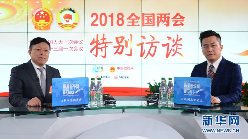 3月6日,全國人大代表、東風汽車集團有限公司技術中心主任談民強(左)做客新華網(wǎng)2018全國兩會特別訪談。新華網(wǎng) 楊濛/攝