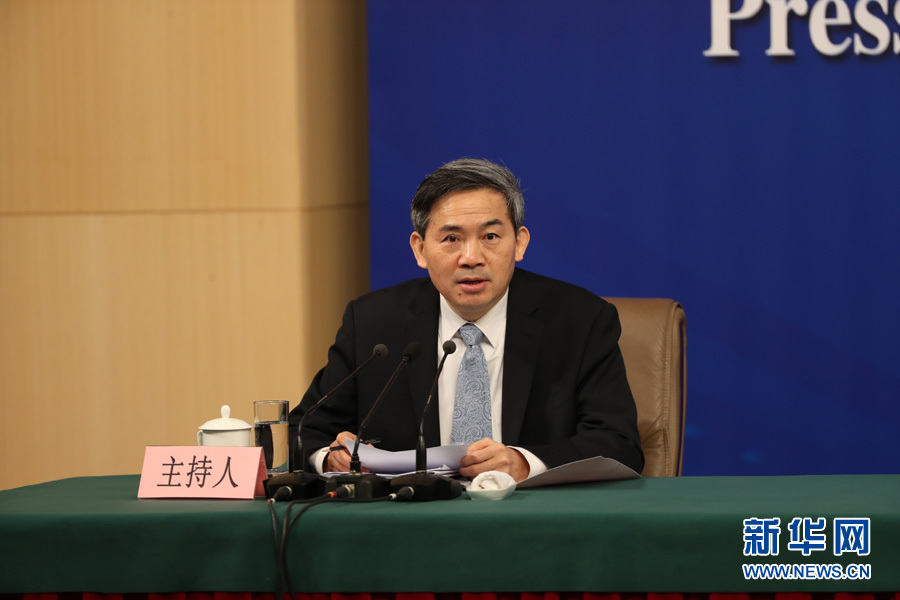 十三屆全國人大一次會議新聞中心3月6日上午10時在梅地亞中心多功能廳舉行記者會,邀請國家發展和改革委員會主任何立峰、副主任張勇、副主任寧吉喆就“創新和完善宏觀調控,推動高質量發展”相關問題回答中外記者提問。圖為記者會主持人何紹仁。新華網/中國政府網 陳杰 攝