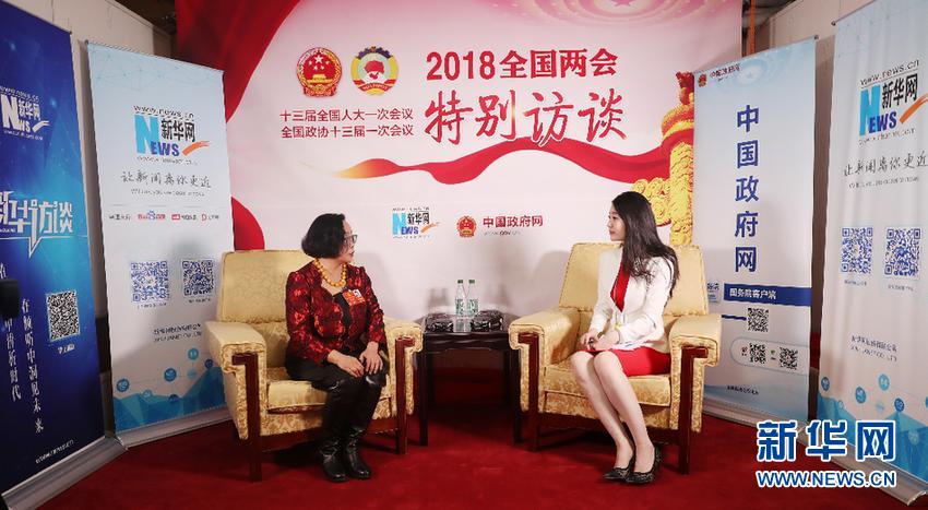 3月5日,全國人大代表、河北蔚縣周淑英剪紙藝術館館長周淑英到設在人民大會堂的新華網兩會特別訪談演播廳接受專訪。新華網 王翰林 攝