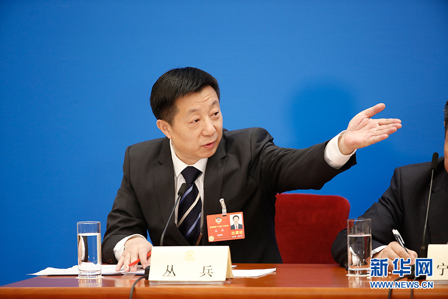 全國(guó)政協(xié)十三屆一次會(huì)議3月8日15:00在人民大會(huì)堂新聞發(fā)布廳舉行第二場(chǎng)記者會(huì),邀請(qǐng)中央財(cái)經(jīng)領(lǐng)導(dǎo)小組辦公室副主任楊偉民,中國(guó)進(jìn)出口銀行董事長(zhǎng)、黨委書(shū)記胡曉煉,農(nóng)業(yè)部原副部長(zhǎng)陳曉華,全國(guó)工商聯(lián)副主席、清華大學(xué)經(jīng)濟(jì)管理學(xué)院院長(zhǎng)錢(qián)穎一,中國(guó)中化集團(tuán)有限公司黨組書(shū)記、董事長(zhǎng)寧高寧就推動(dòng)經(jīng)濟(jì)高質(zhì)量發(fā)展回答記者提問(wèn)。圖為記者會(huì)主持人叢兵 。新華網(wǎng)/中國(guó)政府網(wǎng) 翟子赫攝