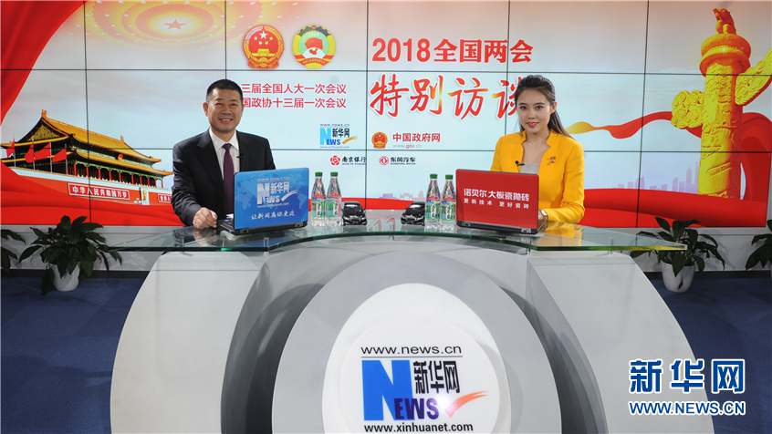 3月9日,全國人大代表、飛鶴乳業(yè)董事長(zhǎng)冷友斌(左)做客新華網(wǎng)2018全國兩會(huì)特別訪談。新華網(wǎng) 郭小天攝