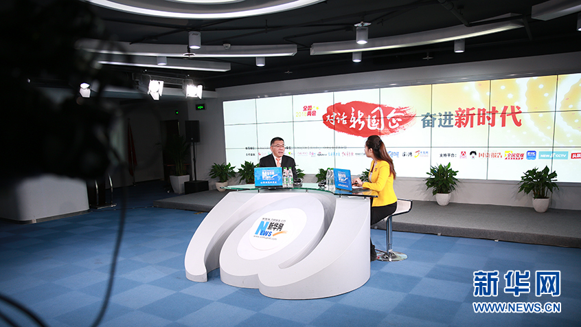 全國人大代表、廣西柳工集團有限公司董事長曾光安(左)做客國資委和新華網(wǎng)共同推出的“對話新國企·奮進新時代”系列訪談。新華網(wǎng) 楊锘攝