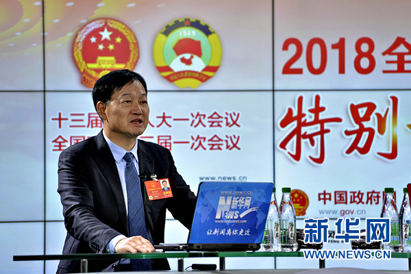 全國人大代表、牧原食品股份有限公司董事長秦英林做客新華網2018全國兩會特別訪談 新華網 李相博攝