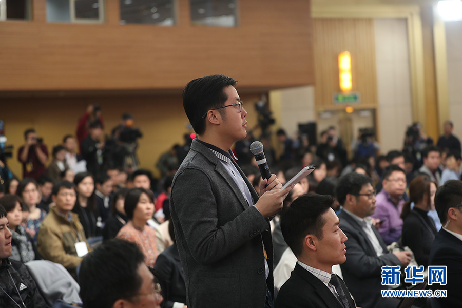 十三屆全國人大一次會議新聞中心3月10日上午10時45分在梅地亞中心多功能廳舉行記者會,邀請科技部部長萬鋼、政策法規與監督司司長賀德方、創新發展司司長許倞就“加快建設創新型國家”相關問題回答中外記者提問。圖為中國日報記者提問。 新華網/中國政府網 陳杰 攝
