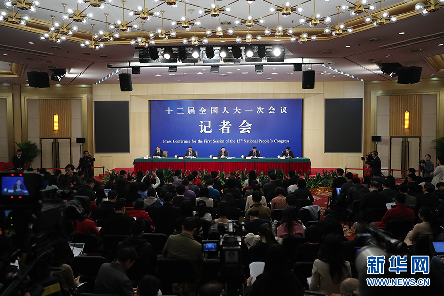 十三屆全國人大一次會議新聞中心3月10日上午10時45分在梅地亞中心多功能廳舉行記者會,邀請科技部部長萬鋼、政策法規與監督司司長賀德方、創新發展司司長許倞就“加快建設創新型國家”相關問題回答中外記者提問。圖為記者會現場。 新華網/中國政府網 陳杰 攝