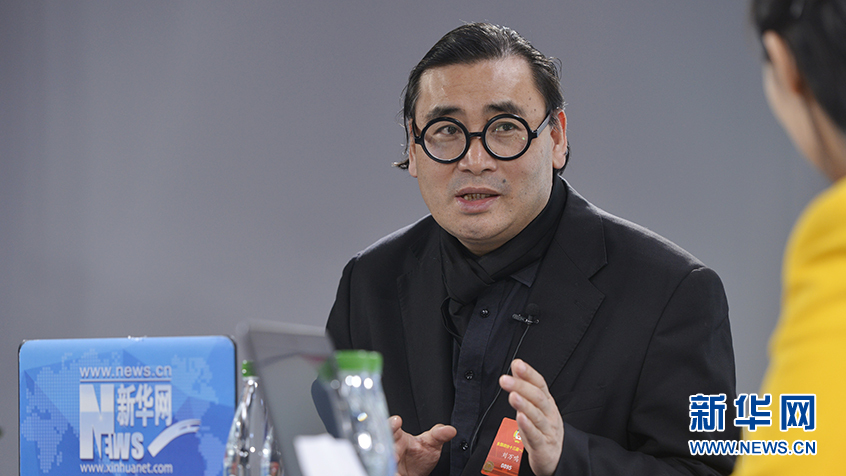 3月10日,全國政協委員、中國藝術研究院研究生院常務副院長劉萬鳴(左)做客新華網2018全國兩會特別訪談。新華網 李相博攝