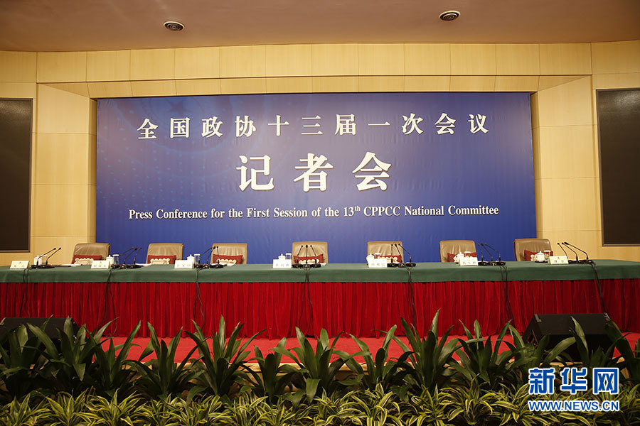 3月10日8時(shí)45分,全國(guó)政協(xié)十三屆一次會(huì)議將在梅地亞中心多功能廳舉行記者會(huì),邀請(qǐng)5位全國(guó)政協(xié)委員就“提高保障和改善民生水平”回答記者提問。圖為記者會(huì)現(xiàn)場(chǎng)。新華網(wǎng)/中國(guó)政府網(wǎng) 陳杰 攝
