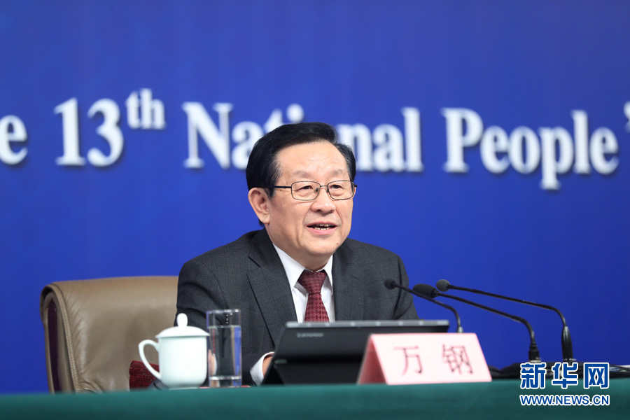 十三屆全國人大一次會議新聞中心于10日上午10時45分在梅地亞中心多功能廳舉行記者會,邀請科技部部長萬鋼、政策法規與監督司司長賀德方、創新發展司司長許倞就“加快建設創新型國家”相關問題回答中外記者提問。圖為科技部部長萬鋼回答記者提問。新華網/中國政府網 翟子赫 攝