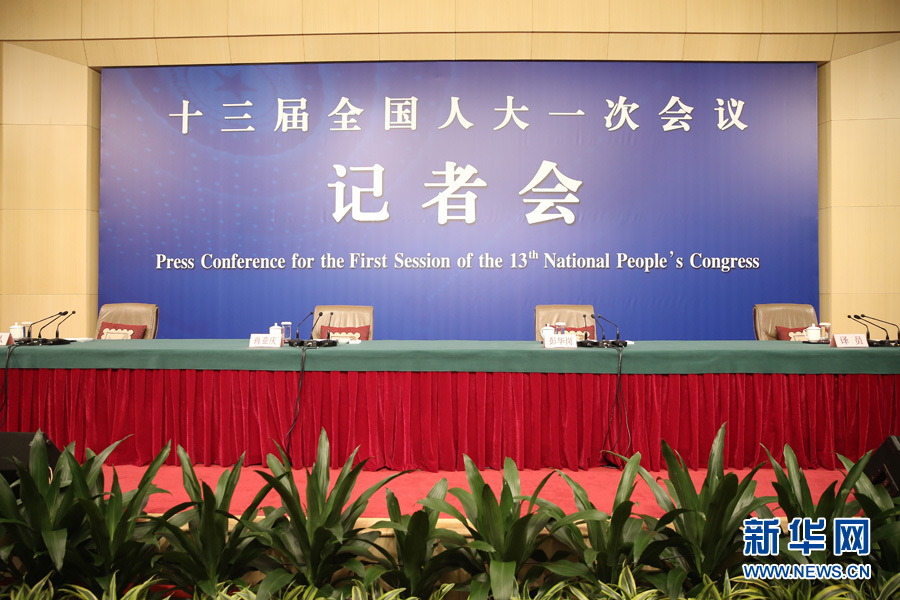 十三屆全國人大一次會議新聞中心3月10日15時在梅地亞中心多功能廳舉行記者會,邀請國務院國資委主任肖亞慶,副秘書長、新聞發言人彭華崗就“國有企業改革發展”相關問題回答中外記者提問。圖為記者會現場。新華網/中國政府網 翟子赫 攝