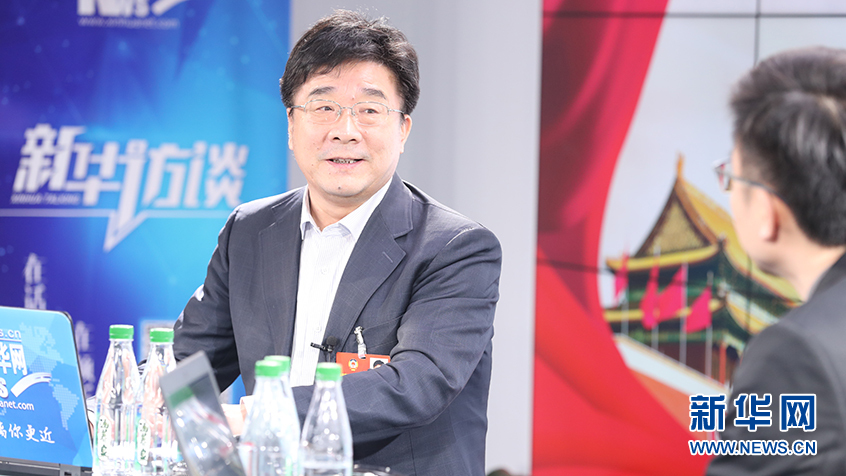 3月11日,全國政協委員、中國人民大學校長劉偉(左)做客新華網2018全國兩會特別訪談。新華網?郭小天攝