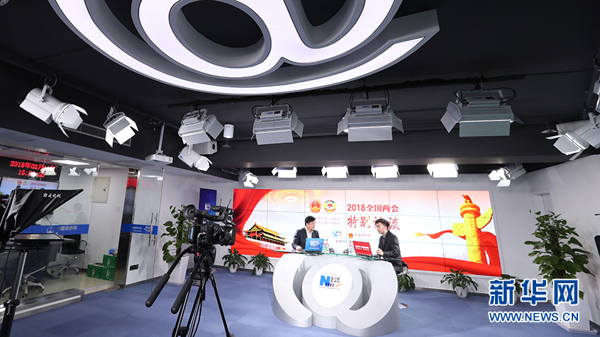 3月11日,全國政協(xié)委員、中國人民大學校長劉偉(左)做客新華網(wǎng)2018全國兩會特別訪談。新華網(wǎng) 郭小天攝
