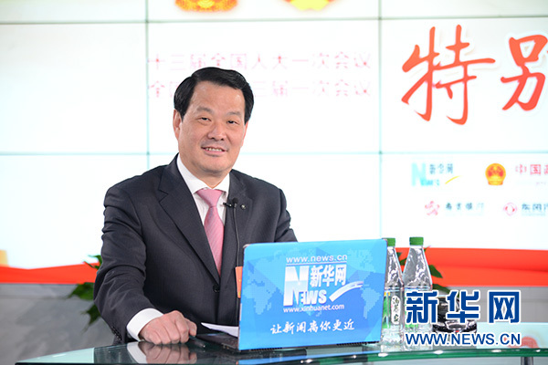 全國人大代表,中建材蚌埠玻璃工業設計研究院院長彭壽做客新華網2018全國兩會特別訪談 新華網楊濛 攝