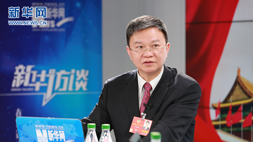 圖為全國政協委員,中國科學院院士、蘭州大學校長嚴純華做客新華網2018全國兩會特別訪談。新華網楊锘攝
