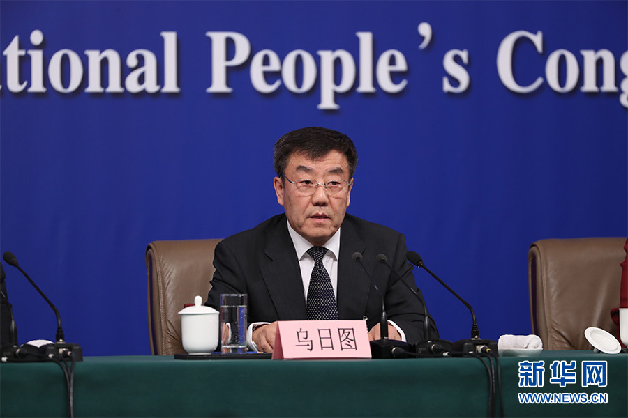 圖為財(cái)經(jīng)委副主任委員烏日圖回答記者提問。新華網(wǎng)/中國政府網(wǎng) 翟子赫 攝