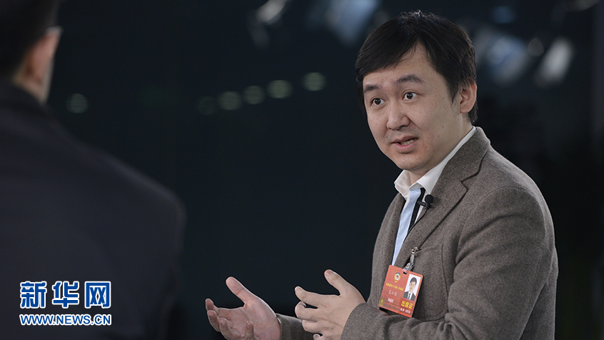 ??? 全國政協委員、搜狗CEO王小川做客新華網2018全國兩會特別訪談。新華網 李相博攝