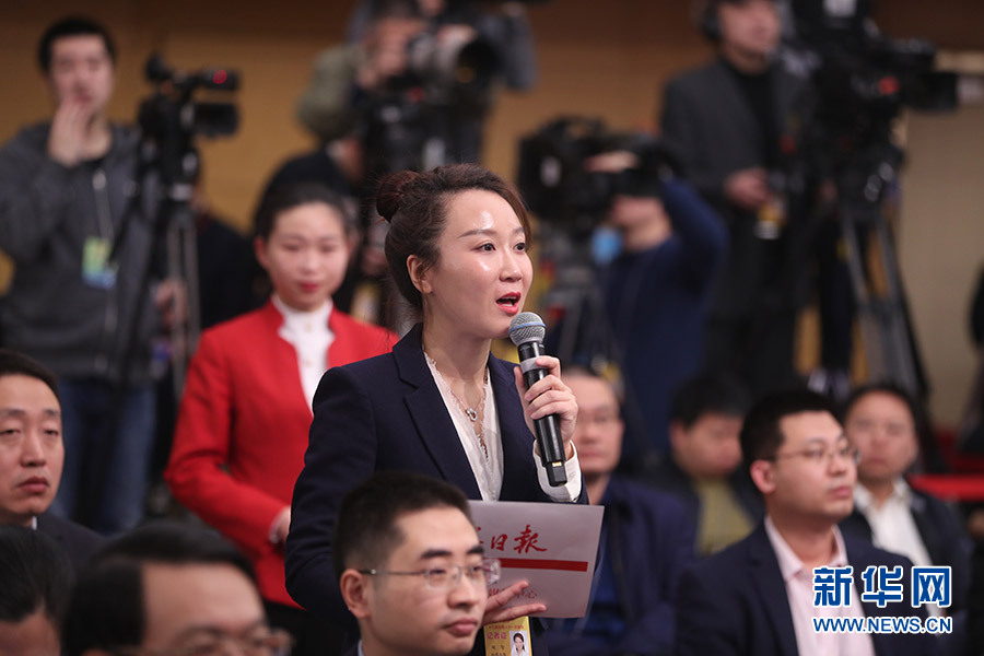 3月12日,十三屆全國人大一次會議新聞中心在梅地亞中心多功能廳舉行記者會,邀請十二屆全國人大內司委副主任委員王勝明、財經委副主任委員烏日圖、教科文衛委副主任委員吳恒、環資委委員呂彩霞,全國人大常委會法工委副主任王超英、副主任許安標就“人大立法工作”相關問題回答中外記者提問。圖為檢察日報記者提問。新華網/中國政府網 翟子赫 攝