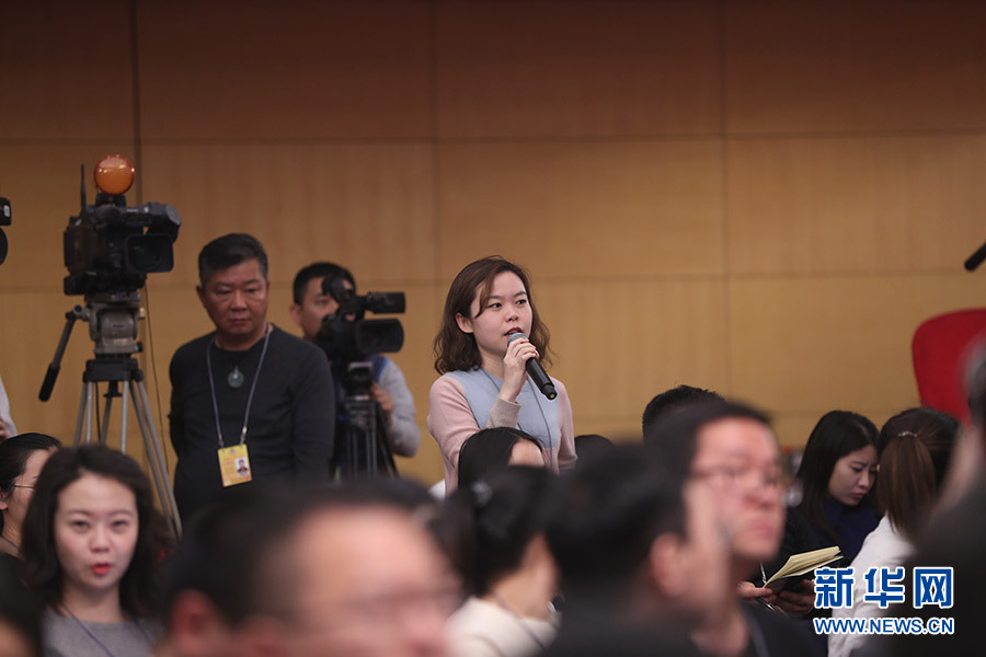 3月12日,十三屆全國人大一次會議新聞中心在梅地亞中心多功能廳舉行記者會,邀請十二屆全國人大內司委副主任委員王勝明、財經委副主任委員烏日圖、教科文衛委副主任委員吳恒、環資委委員呂彩霞,全國人大常委會法工委副主任王超英、副主任許安標就“人大立法工作”相關問題回答中外記者提問。圖為北京青年報記者提問。新華網/中國政府網 翟子赫 攝