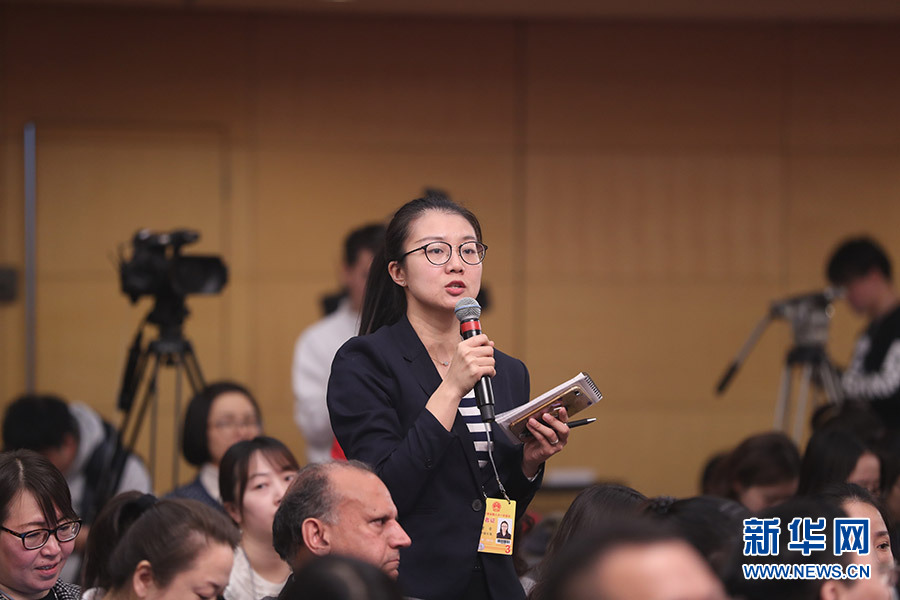 3月12日,十三屆全國人大一次會議新聞中心在梅地亞中心多功能廳舉行記者會,邀請十二屆全國人大內司委副主任委員王勝明、財經委副主任委員烏日圖、教科文衛委副主任委員吳恒、環資委委員呂彩霞,全國人大常委會法工委副主任王超英、副主任許安標就“人大立法工作”相關問題回答中外記者提問。圖為中國日報記者提問。新華網/中國政府網 翟子赫 攝