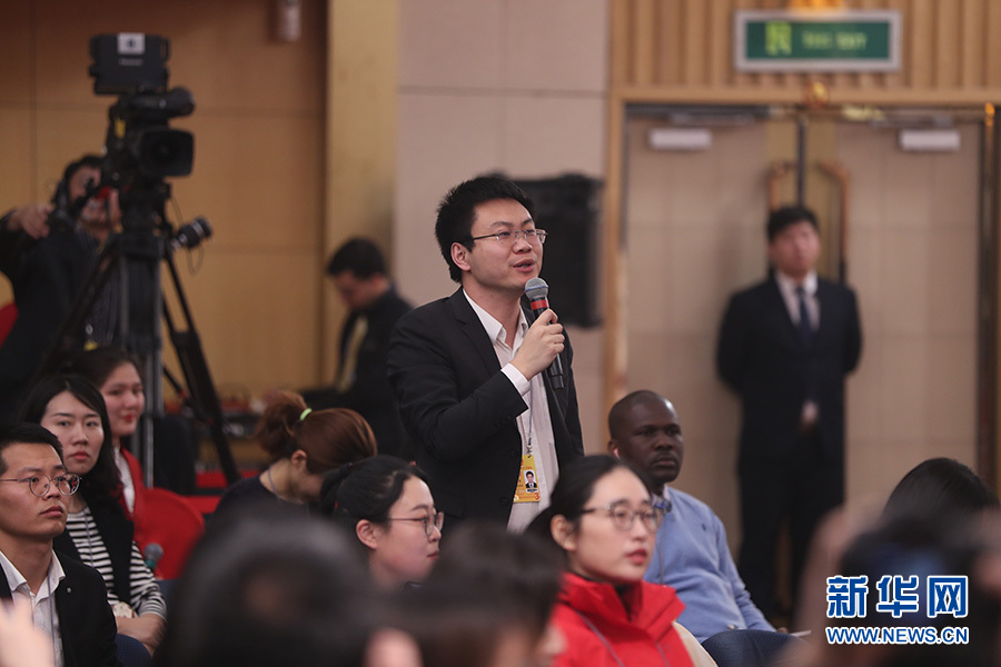 3月12日,十三屆全國人大一次會議新聞中心在梅地亞中心多功能廳舉行記者會,邀請十二屆全國人大財經委副主任委員尹中卿、教科文衛委副主任委員吳恒、環資委副主任委員袁駟、內司委委員鄭功成,全國人大常委會預算工委副主任劉修文、常委會辦公廳秘書局巡視員傅文杰就“人大監督工作”相關問題回答中外記者提問。圖為中國新聞社記者提問。新華網/中國政府網 王健 攝