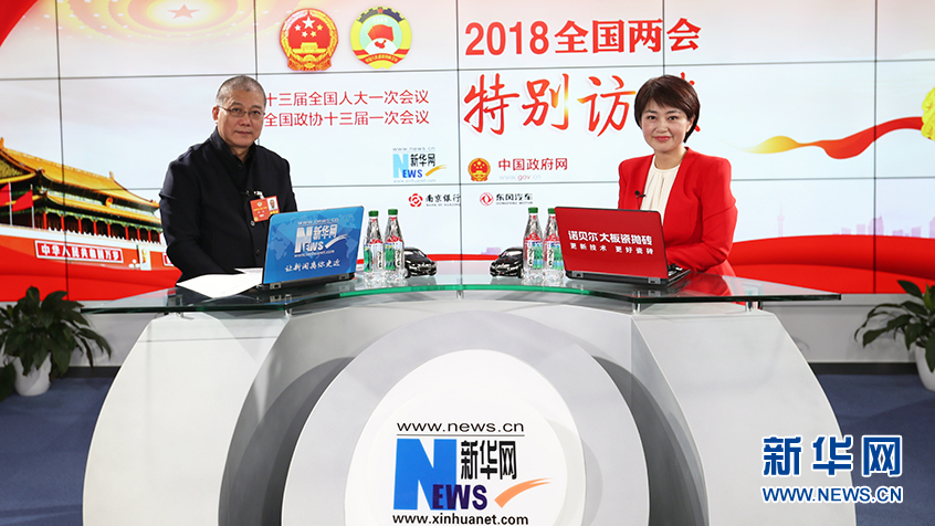 13日,全國政協委員,中國文聯副主席、中國美術學院院長許江做客新華網2018全國兩會特別訪談。新華網 郭小天攝