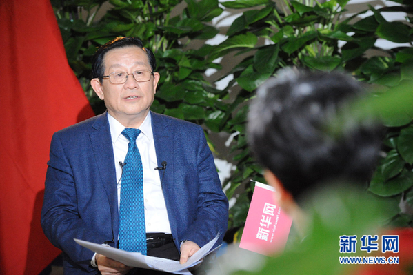 圖為科技部部長萬鋼接受新華網和中國政府網專訪。新華網?郭小天 攝
