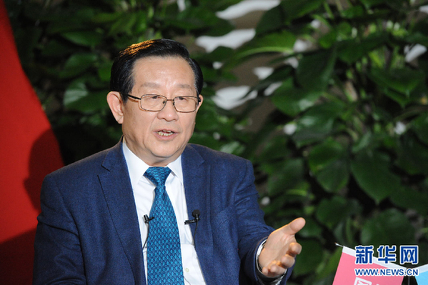 圖為科技部部長萬鋼接受新華網和中國政府網專訪。新華網?郭小天 攝