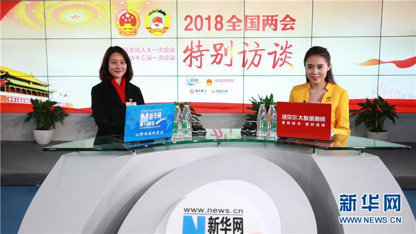 3月13日,全國人大代表、瀘州老窖股份有限公司酒體設計管理中心副主任曾娜(左)做客新華網(wǎng)2018全國兩會特別訪談。新華網(wǎng) 楊锘攝
